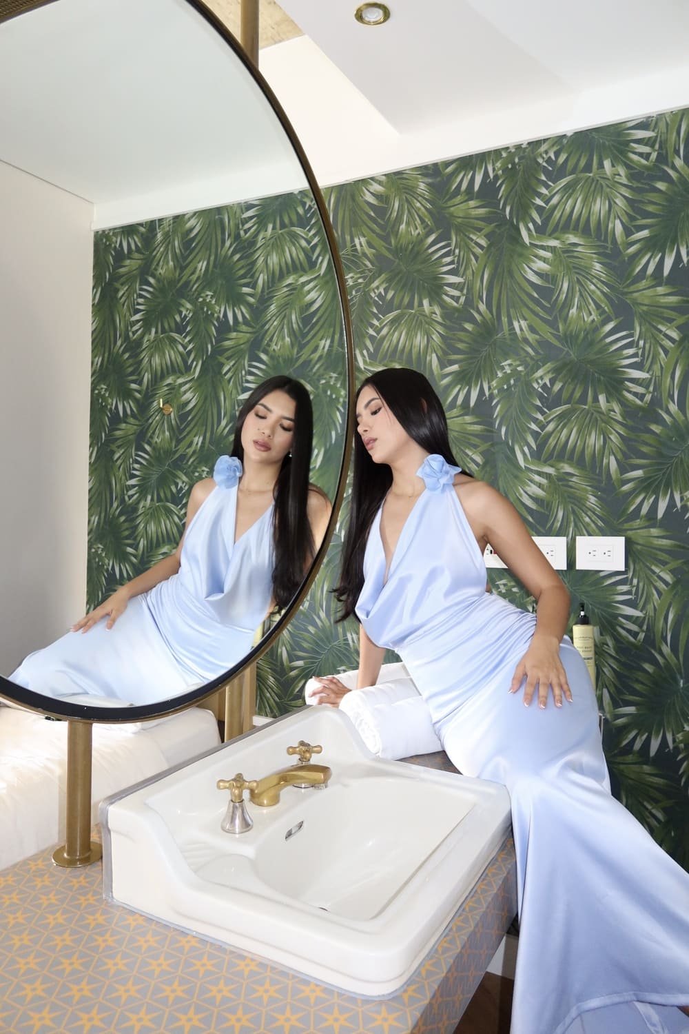 With its open-back design and floor-sweeping flowing skirt, this dress offers a polished, timeless look. It is the perfect choice for upscale weddings, formal dinners, or any sophisticated evening event in Curazao where you want to make a graceful statement.