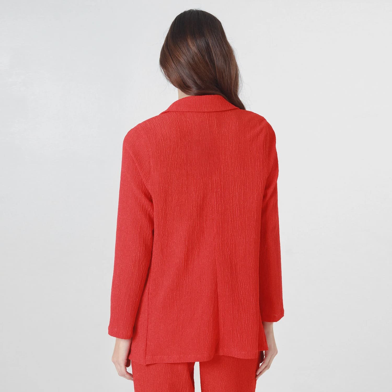 Add a vibrant pop of color to your wardrobe with the Textured Stretch Red Jacket by FDS.